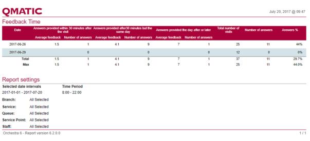 Answers provided after 30 minutes, but the same day | The result of the feedback provided later than 30 minutes after the end of the Visit, but still on the same day. |