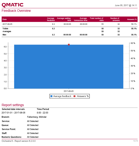 Average feedback | The average of all the numeric feedbacks. |