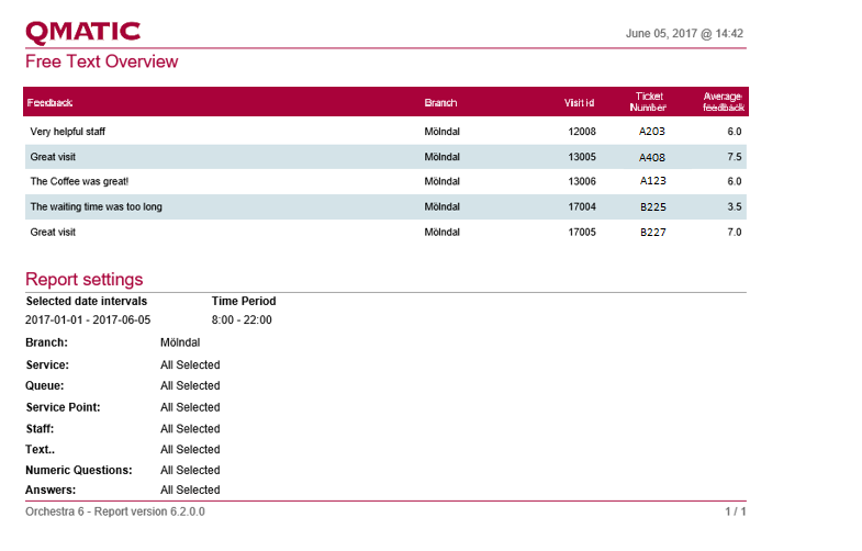 Total, Average waiting time | The average waiting time for all included Customers. |