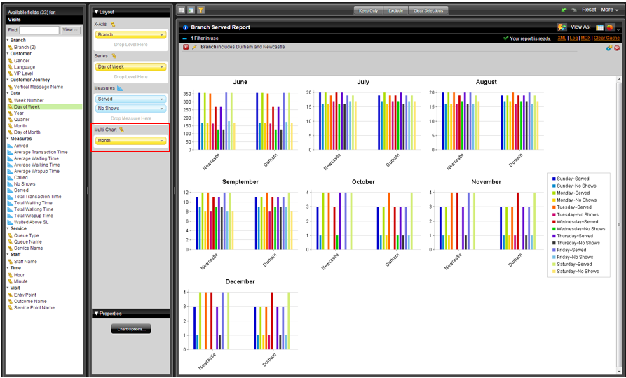 3. Move the appropriate fields into the Multi-Chart section. The field auto populates with the different charts dependent upon the level placed in the Multi-Chart field.