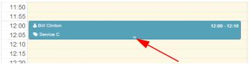 It is also possible to change the duration of an appointment, by clicking on the double lines at the bottom of the appointment box, as seen in the picture below, and simply making the appointment box larger or smaller.